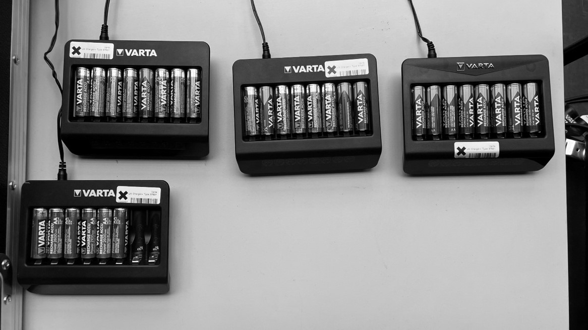 We don’t use tape to wrap the wires, we use Velcro® strap attached to the wire. The adhesive surface of the tape makes the wires sticky, and the sticky wires can only be cleaned with a strong solvent. We attach the wires to the hanging points and other structures instead of tape with Spannfix rubber band. Where possible, we use high-quality rechargeable batteries instead of standard batteries.