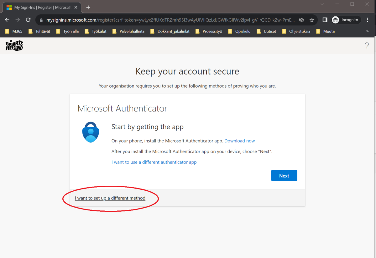 We strongly recommend that you still use Microsoft Authenticator and change it to be the default login method. Instructions on how to start using the Microsoft Authenticator app can be found below.